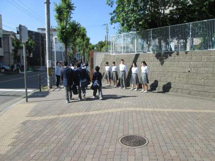 大変眩しい日差しの中、生徒会執行部や委員会、部活動の諸君があいさつ運動に参加してくれています。とても活気があります! 感謝!