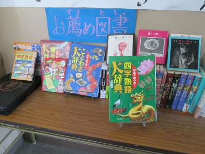 「漢字検定」に向けて、ことわざや四字熟語の本が並んでいます。