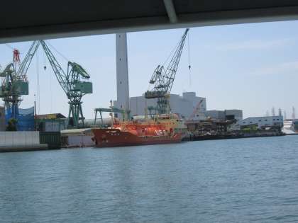 堺のラグビー会場へ自転車で向かうため、千本松渡船を利用しました。