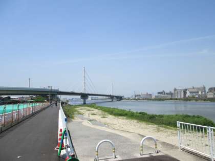 住之江公園を南下すると「阪堺大橋」。大和川です。