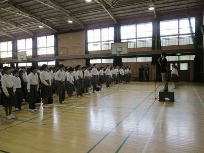 今日は「元気の出る学校 あいうえお 」を発表し、今年一年の北中のスローガンにしたいと思います。