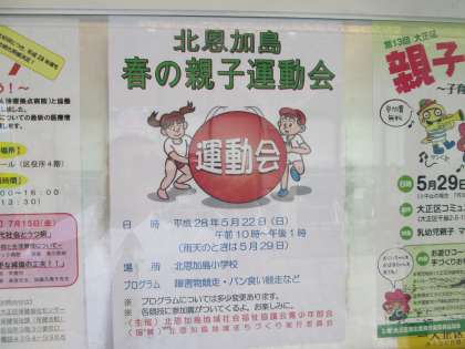 バス停には、北恩加島地域の運動会の案内が! 来週の日曜日です。