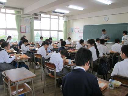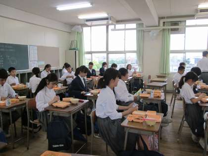 1年生は配膳を終え、これから「いただきます」。
