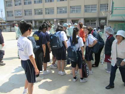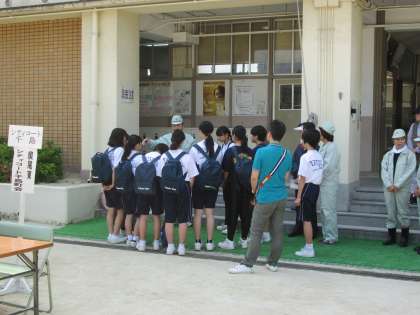 区役所や消防署と連携したこの活動、本校の有志やソフトテニス部・バスケットボール部の生徒も参加してくれました。