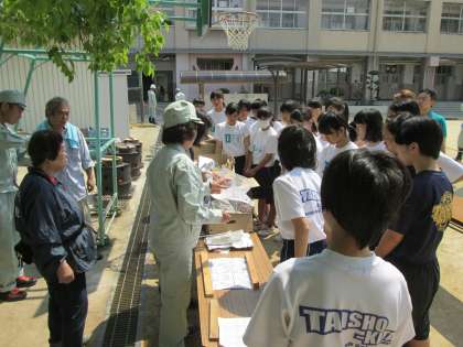 本日、泉尾東地域の防災訓練が、地域防災リーダーさんを核として小学校で実施されました。