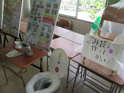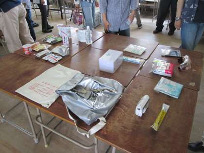 避難した3階教室には、防災・緊急時グッズがたくさん紹介されていました。