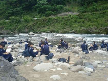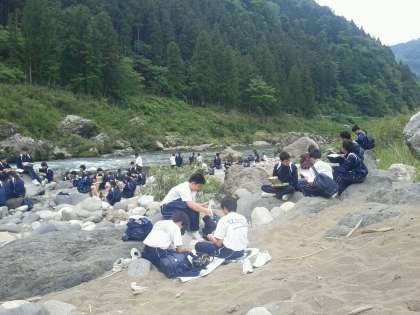 豪快な川の流れを聞きながら、お弁当をいただきました。