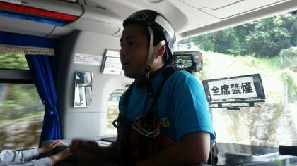 着替えたあと、バスの中で説明が始まりました。