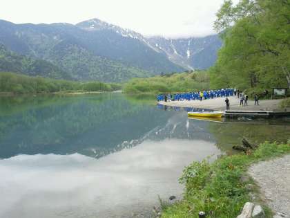 雪の残る穂高、焼岳、そして大正池。最高です。