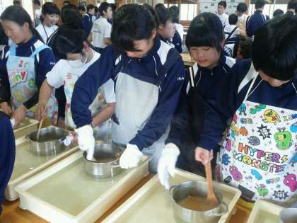 冷ましながら混ぜています。
