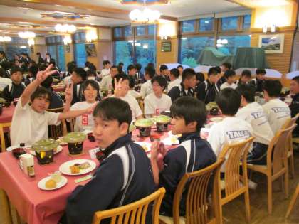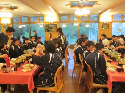 一般客には申し訳ありませんが、食堂の2/3を独占。
