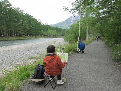川のほとりでは、スケッチや水性画を描く人たちが数多くいました。
