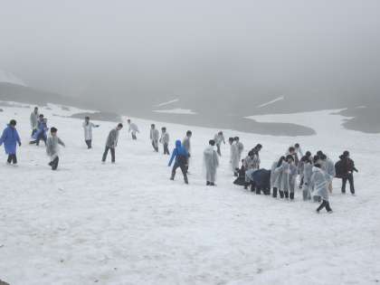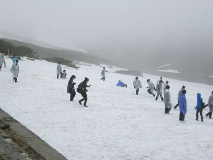 制限区域・制限時間を指示したのち、生徒たちは、広い雪のゲレンデに広がりました。