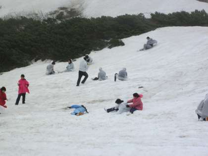 雪で濡れようが、お構いなしに