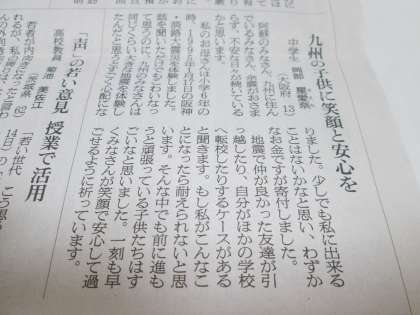 本日の朝日新聞朝刊に、本校2年岡部さんの作文が掲載されました。
