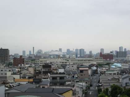 あいにくのお天気でしたが、昭和山コーポからは、大阪ドームやミナミの摩天楼が見えました。