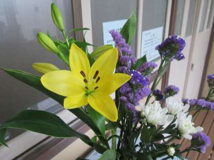 校長室前は、黄色のユリの花が、キレイに咲きました。