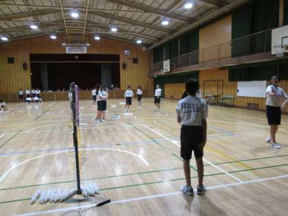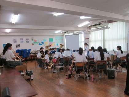 続いて、体育館のバドミントン部、中庭のバスケット部、そして、音楽室の吹奏楽部です。