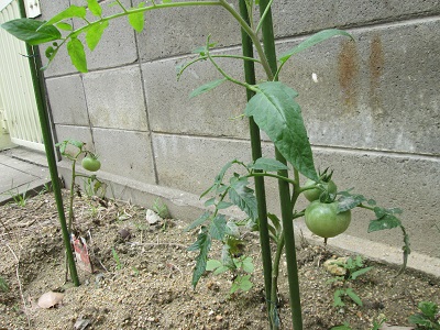 畑のトマトが、そろそろ色づくか?