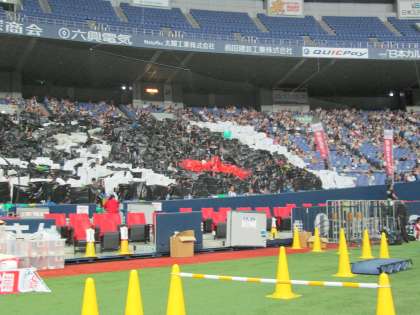 人文字は、学校90周年のお祝いだけでなく、地震の被害を受けた熊本への熱いメッセージがありました。