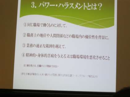 本日の研修会は、テーマが「ハラスメントの無い職場づくり」。