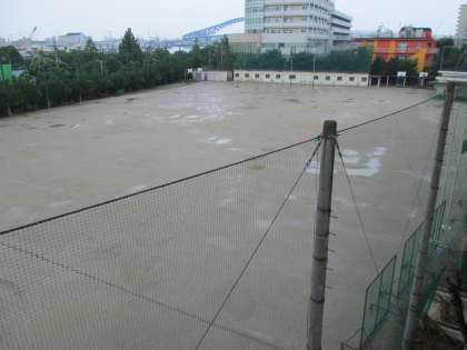 グラウンドは、またまた水浸し・・・。