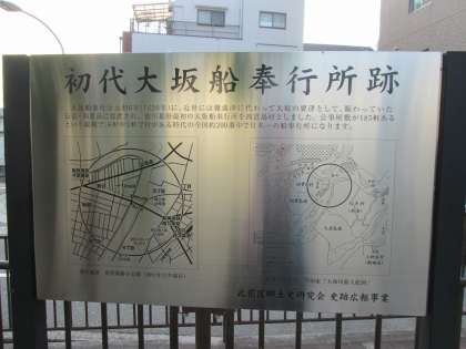 江戸時代初期、四貫島村に設けられた奉行所。安治川が開削されるまで、船は伝法川を使って大坂市中へ向かっていたため、この地(此花区)に作られたそうです。