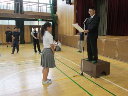 本日は、とても集合が早く、予鈴前に集会が始まりました。