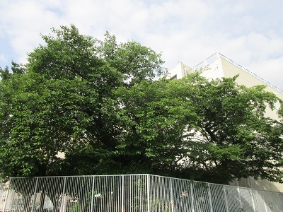 すっかり若葉が大きくなりましたが、今朝はそこから蝉の鳴き声が!