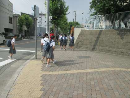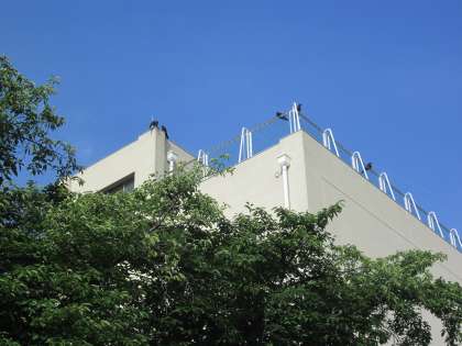 校舎の屋上に、たくさんのカラスが! 無気味です。