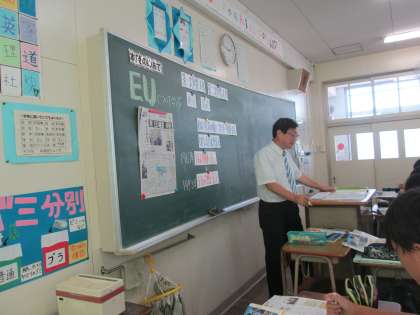 同じく1年の社会科。新聞記事を使って、今話題のEUについてです。