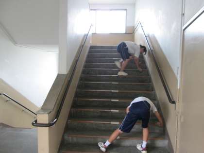 ソフトテニス部の部員が、懇談会でご来校する保護者の皆様のために、階段をキレイにしてくれています。