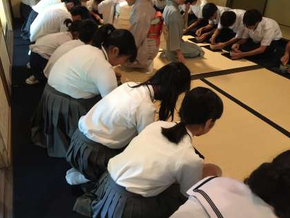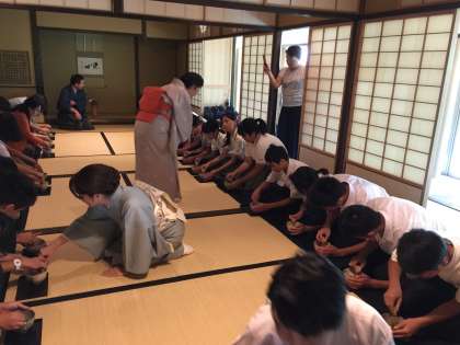 茶道教室では、利休の精神にのっとり、作法をていねいにご指導いただきました。