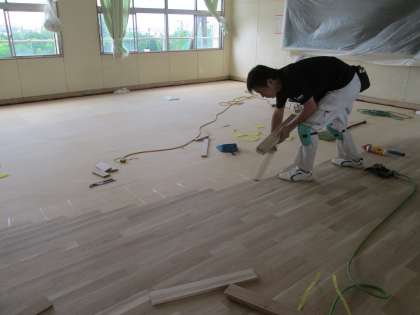 教室の床張り替え工事が、順調にすすんでいるようです。