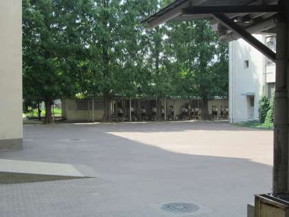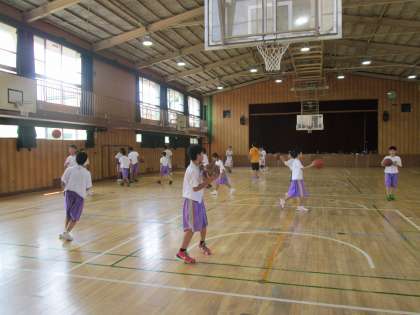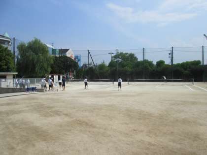 グラウンドでは硬式テニス部が、体育館では男子バスケットボール部が、そして、中庭ではバドミントン部が練習をしています。