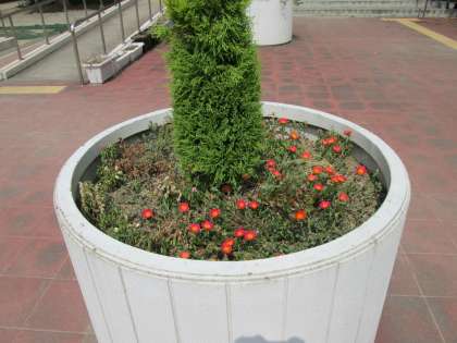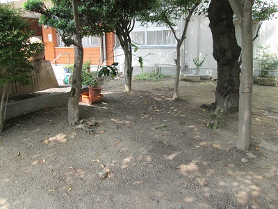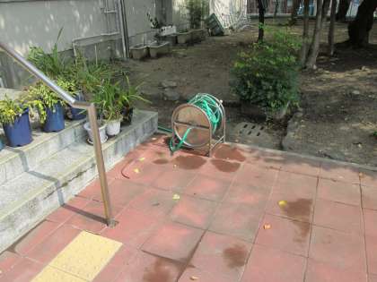 本日も、PTA実行委員の皆様が、玄関の庭の水やりに来てくださいました。