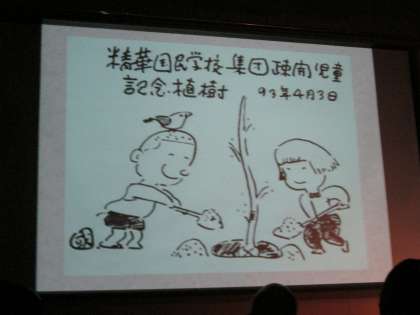 時代は過ぎて、疎開先に仲間とともに「植樹」を。