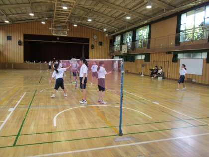 体育館でのバドミントン部の練習。