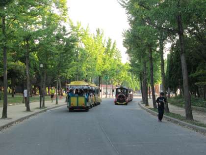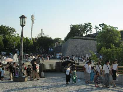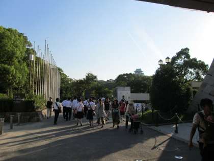 公園内は、どこも行楽客でいっぱいでした。府下の高校生は、大阪城天守閣を見て、歓声をあげていました。