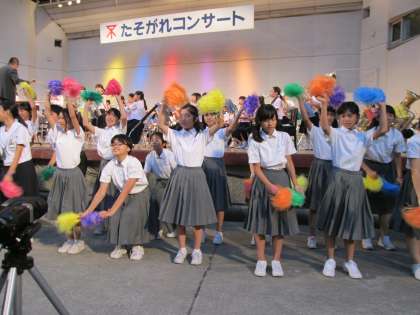 司会者から各校の紹介があり、みんな元気に手をあげて笑顔で応えていました。