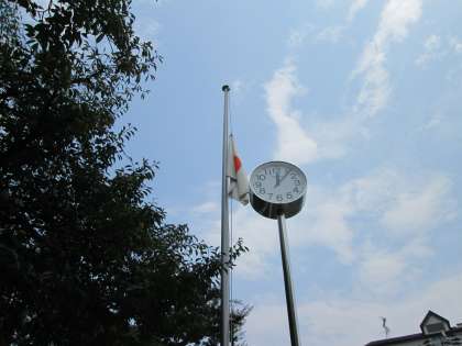 正午に、先の大戦で亡くなった皆様方のご冥福をお祈りし、今の日本の平和に感謝をするため、黙とうを捧げました。