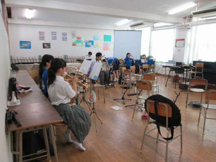 グラウンドや体育館、校舎から、生徒たちの声や演奏が聞こえてきています。