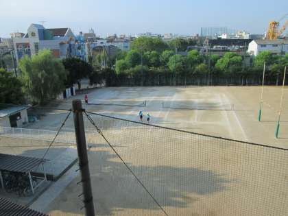 早朝から、ラグビー部は試合の準備、ソフトテニス部は大正東中での試合に向けて、朝練習です。