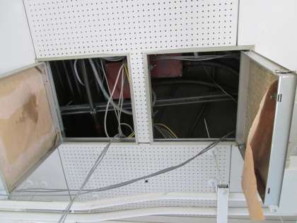 廊下天井裏の配線。かなり複雑です。