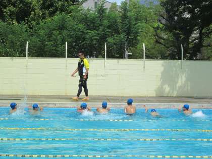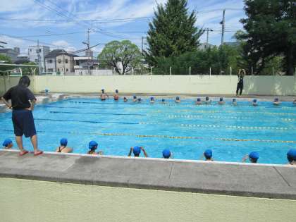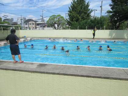 2年生は30日の水泳大会に向けて、プールでの授業。