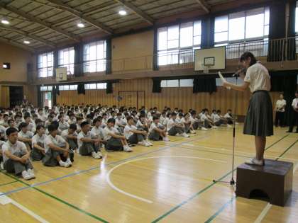ところで、1学期最後の集会では「見た目の大切さ」をお話しました。覚えていて、実践できているでしようか。あいさつもその一つ。第一印象はとても大切です。気持ちのよいあいさつに心がけてください。