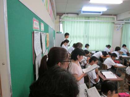 小中連携事業の一環で、小学校からも大勢の先生方がお越しくださって、道徳授業を参観していただきました。