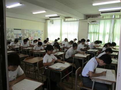 4時間目に突入。お腹も減って、しんどいところですが、3年生は国語のテストに挑戦しています。