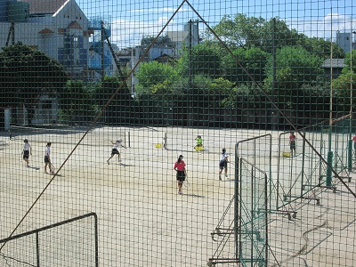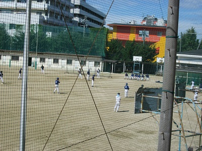 一方、グラウンドでは地域開放で、地域ソフトボールチームの皆さんが試合で汗を流しておられます。