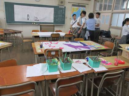 一方、学習室では、体育大会の学級旗の作成が始まっています。